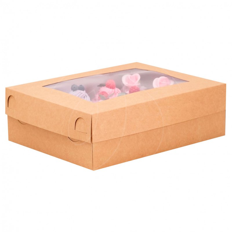 Доставка Коробка на 12 капкейков с окном крафт 32х25х10 см из магазина в вашем городе:
