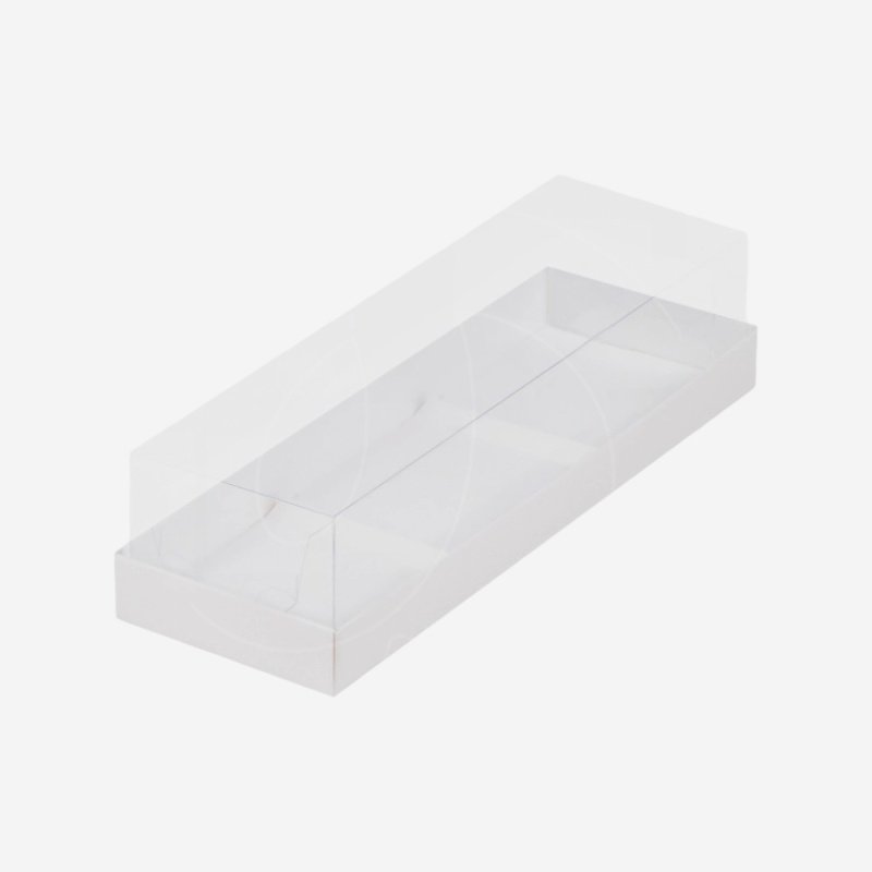 Доставка Коробка на 3 пирожных с прозрачной крышкой белая 26х8,5х6 см из магазина в вашем городе: