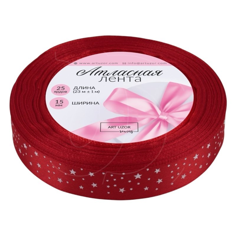 Доставка Лента для декора и упаковки Атласная Красная "Звёзды" 15 мм из магазина в вашем городе:
