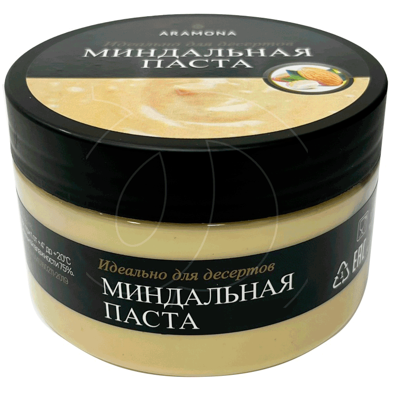 Миндальная паста Aramona - это 100% высококачественная паста с ярко выраженным натуральным вкусом и ароматом из слегка обжаренных (с целью извлечения из них превосходного аромата) отборных ядер очищенного миндаля, растертых до однородной и густой консистенции.