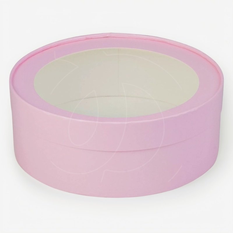 Доставка Коробка для сладостей с окном круглая розовая 20х7 см из магазина в вашем городе: