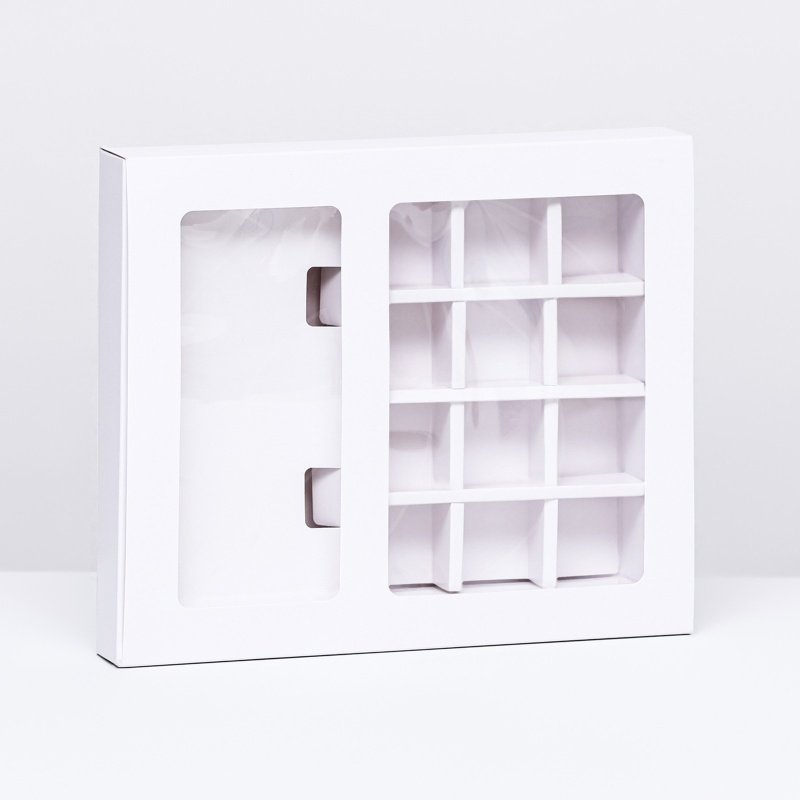 Коробка на 12 конфет и плитку шоколада с окном белая 23,7х19,9х3,1 см