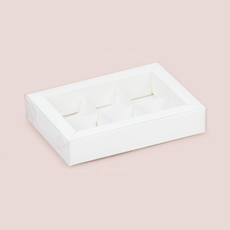 Доставка Коробка на 6 конфет с прозрачной крышкой белая 12х16х3 см из магазина в вашем городе: